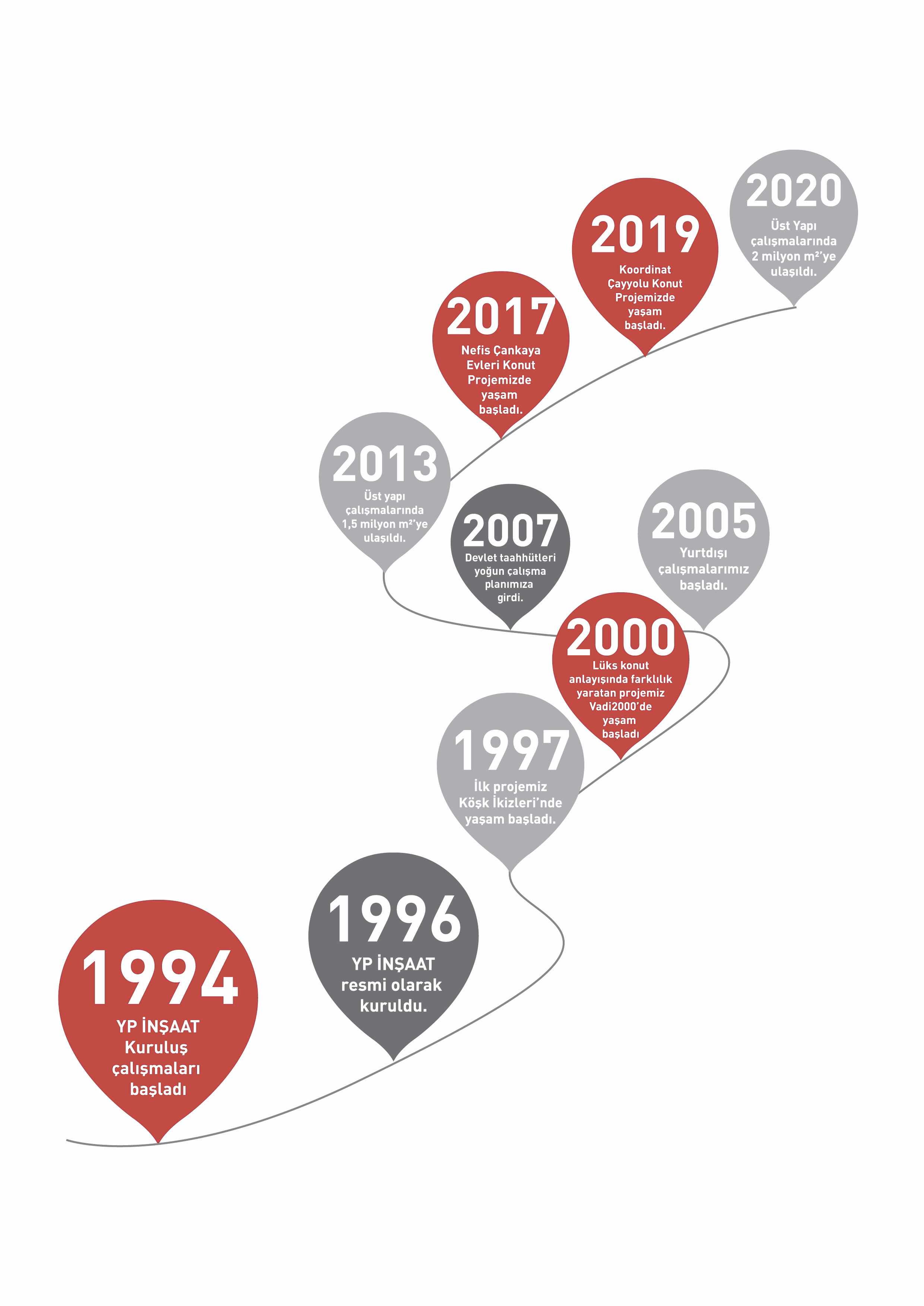 Türkiye’nin saygın müteahhit şirketleri arasında yer alan YP İnşaat 1992 yılında yatırım faaliyetlerine başlamış ve sahip olduğu mühendislik, bilgi ve deneyimlerini uygulama aşamasına getirmek amacıyla, mühendislik hizmetleri ağırlıklı inşaat, taahhüt ve yatırım faaliyetlerinde bulunmak üzere 1996 yılında bağımsız bir anonim şirket olarak YP İnşaat A.Ş. adı altında kurulmuştur. İlk kuruluş sermayesi 100.000TL olan firmanın, şu anda ödenmiş sermayesi 50.430.000TL’dir.